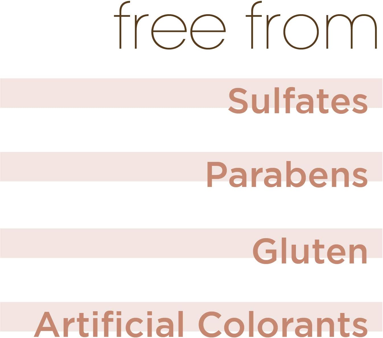 • Free from sulfates, parabens, gluten, and artificial colorants
